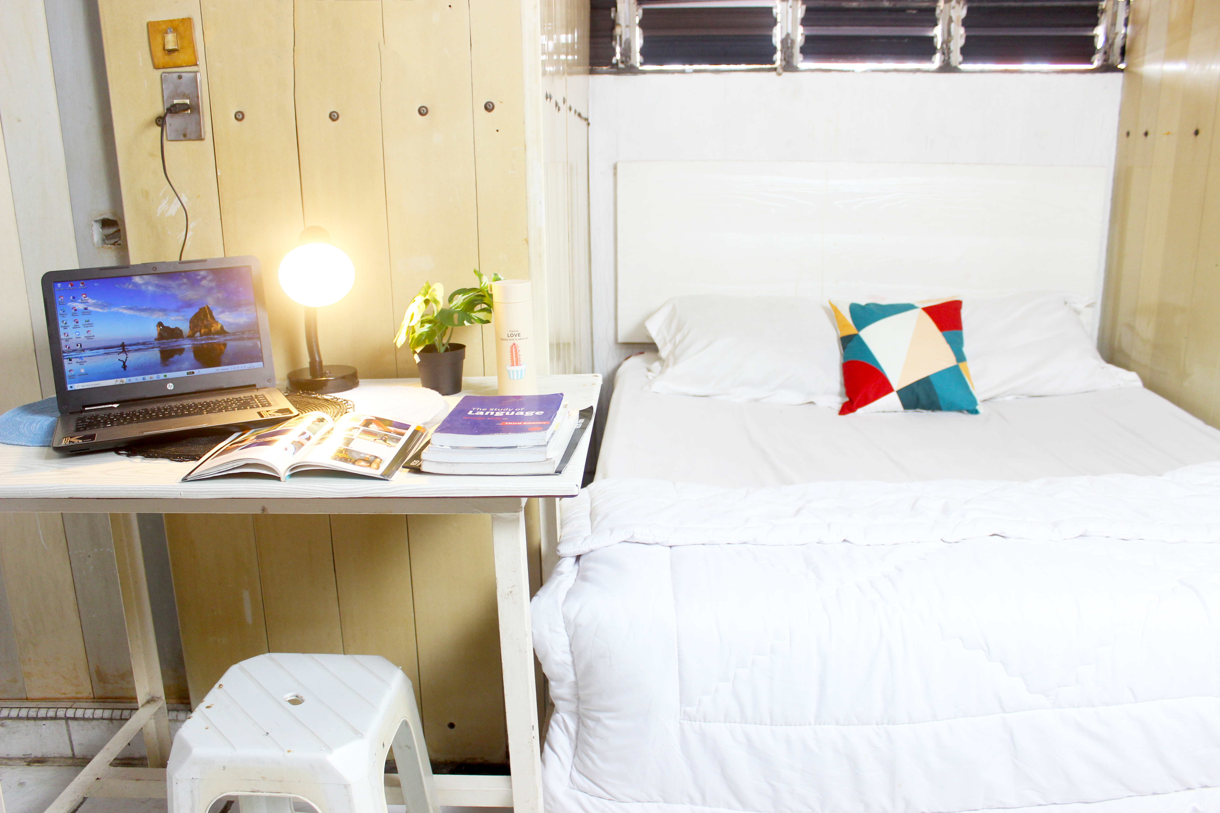 Kamar dengan Queen Size Bed, bisa huni berdua, bisa Non Pasutri, Kamar Mandi luar, Include Listrik dan Air. Dilengkapi Fasilitas umum seperti mesin cuci , area jemur serta parkiran Motor